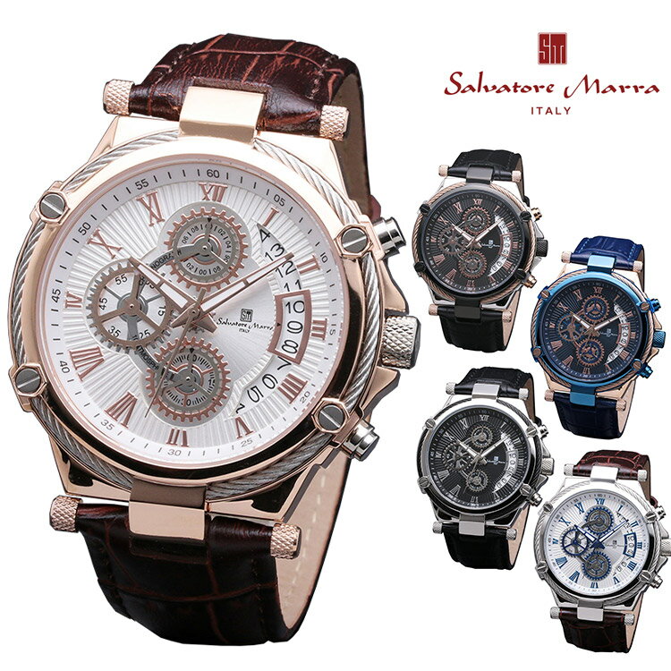 腕時計 Salvatore Marra SM18102 メンズ 腕時計 サルバトーレマーラ クロノグラフ 時計 クォーツ レザーベルト ビジネス カジュアル 通販 父の日